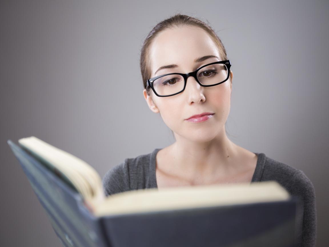 Wallpaper Smart girl with glasses reading a book