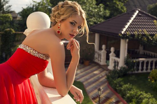 Wallpaper Girl with hairstyle in a beautiful red dress
