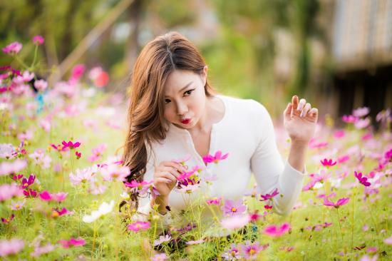 Wallpaper Beautiful Asian girl in the colors of cosmos