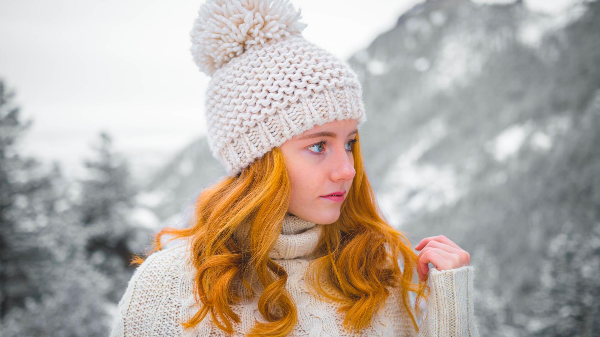 Wallpaper Red-haired girl in a warm hat in winter