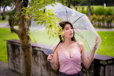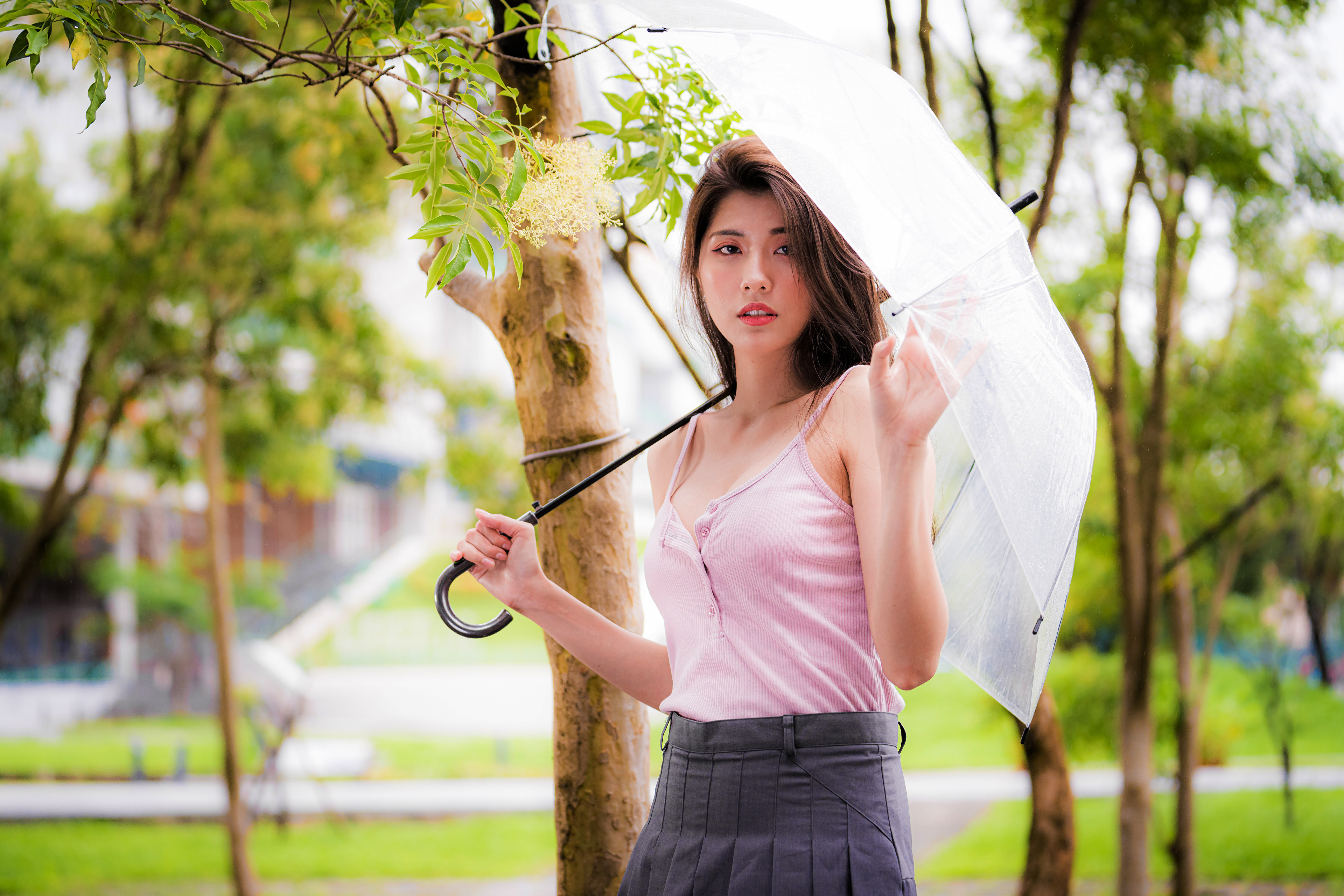 Wallpaper Beautiful gentle Asian in a lilac dress with an umbrella in hand