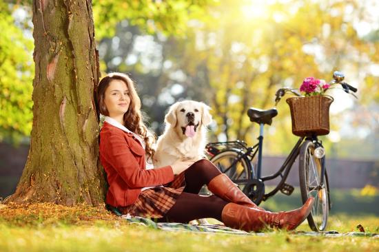 Wallpaper Beautiful girl sitting with a dog by the tree