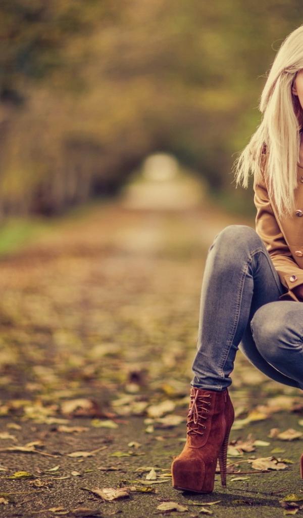 Wallpaper Girl in high heels squatting in the park