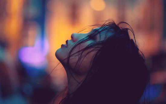 Wallpaper Young asian woman with closed eyes with facial hair