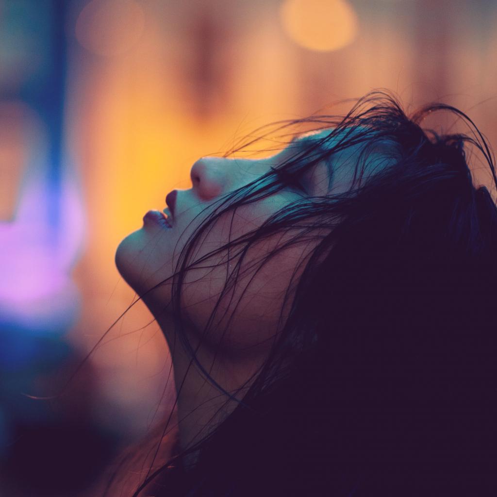 Wallpaper Young asian woman with closed eyes with facial hair