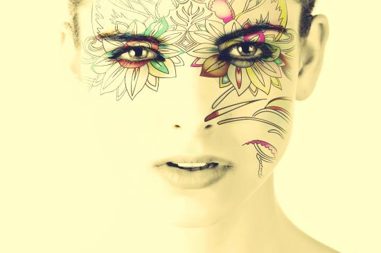Wallpaper Drawing on the girl`s face on a white background