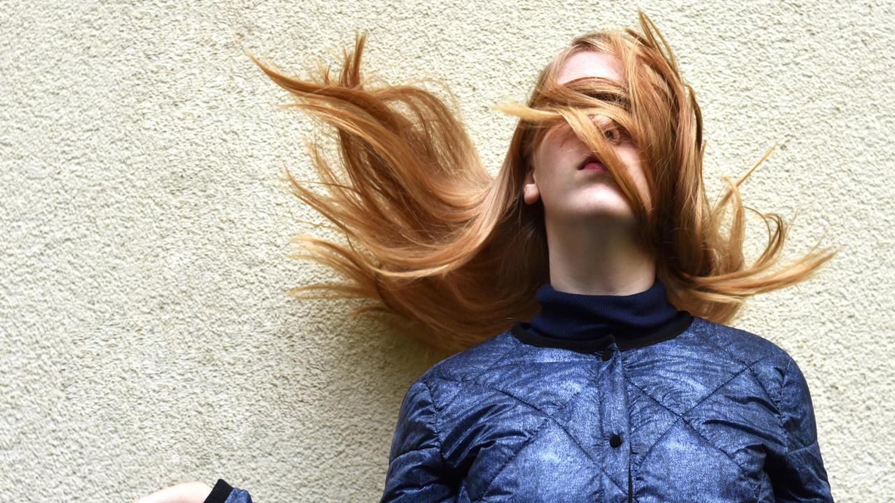 Wallpaper A girl with facial hair stands against the wall