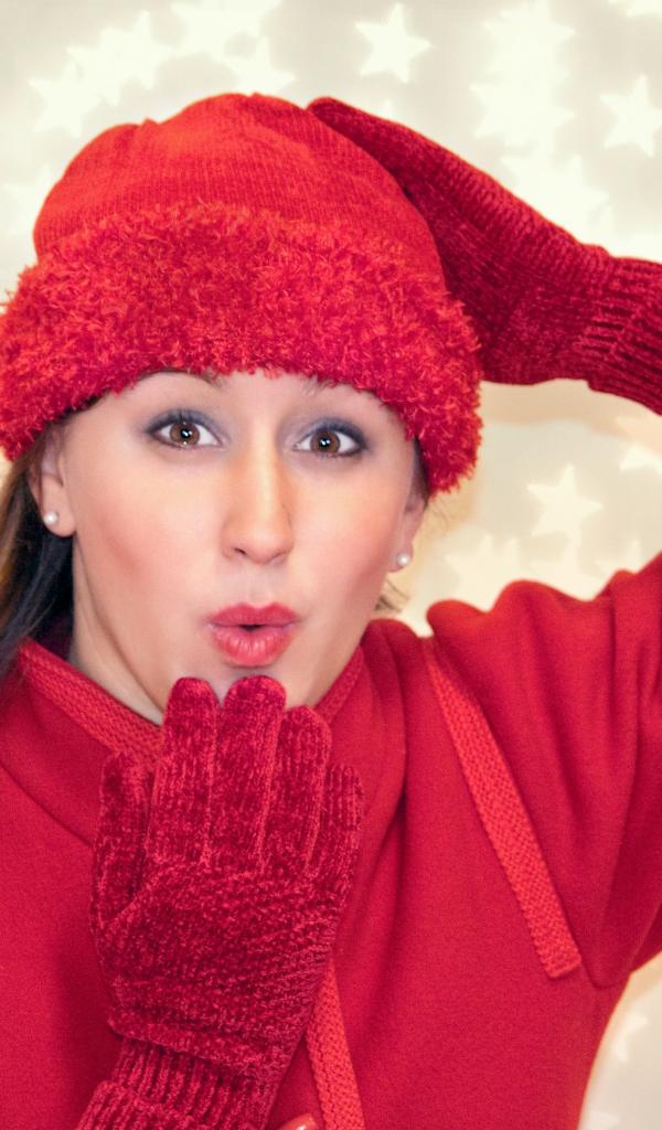 Wallpaper Beautiful girl in red sends an air kiss