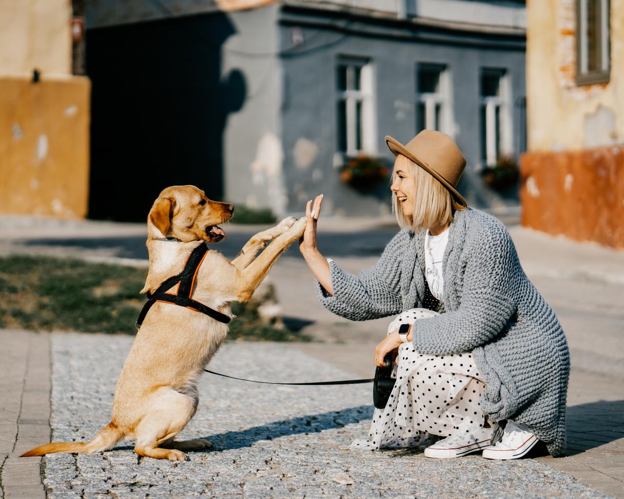 » Wallpaper Beautiful girl playing with a dog