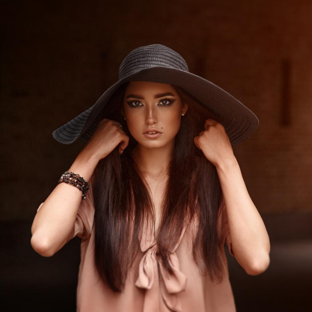 Wallpaper Beautiful brown-eyed brunette in a big hat