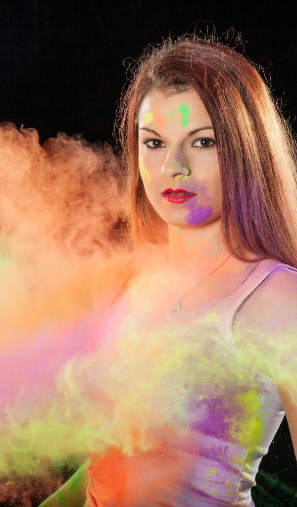 Wallpaper Young girl covered in dust from multi-colored paint