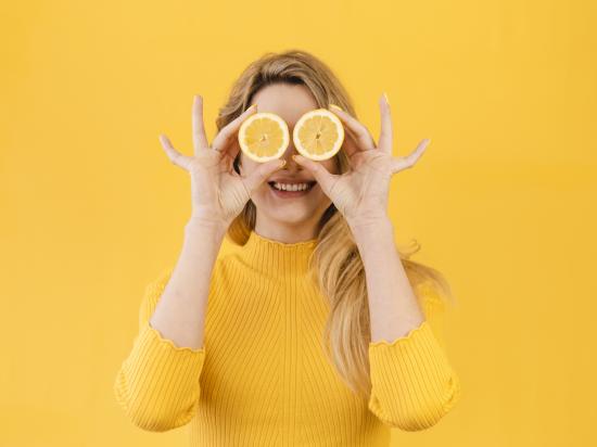 Wallpaper Beautiful girl in a yellow sweater with lemon