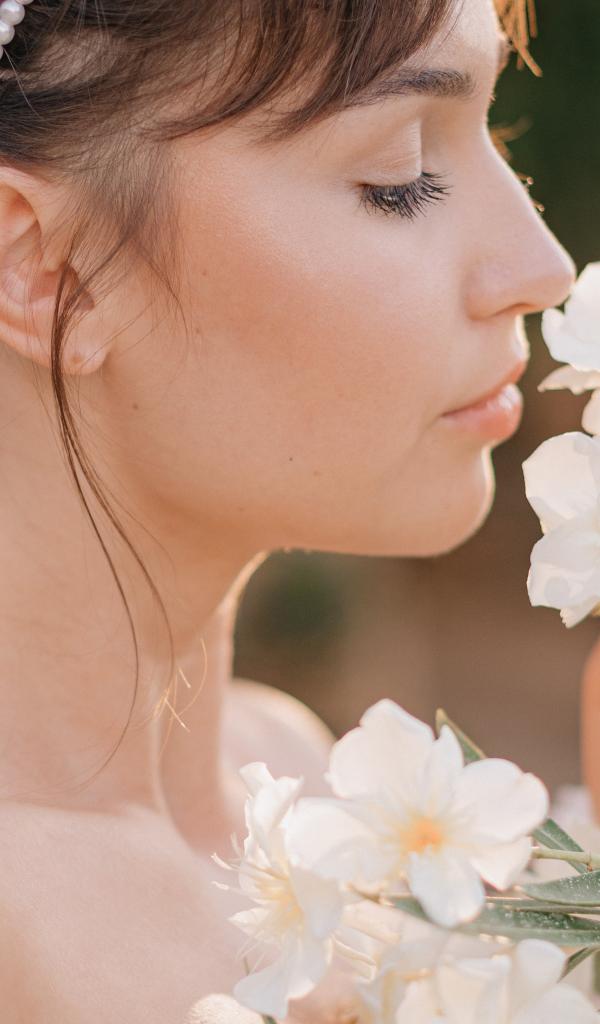 Wallpaper Beautiful girl with white flowers in her hand