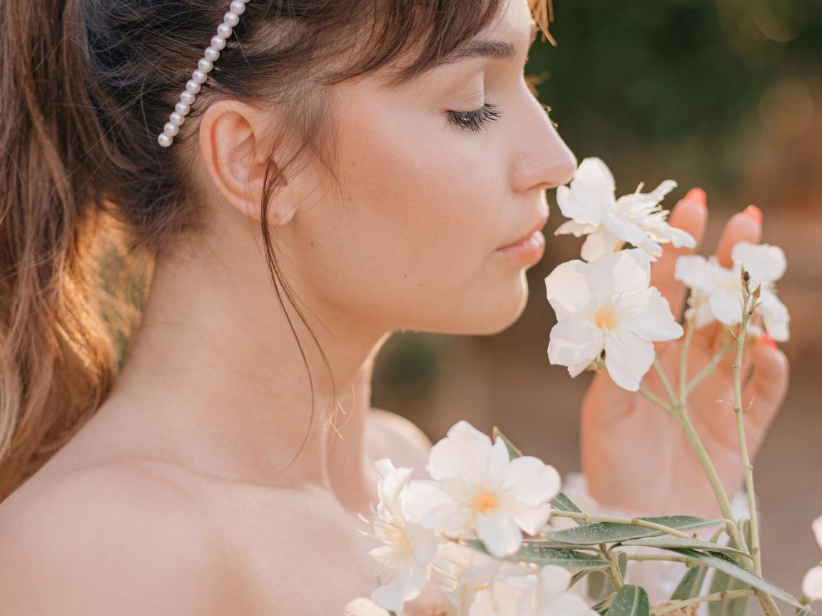 Wallpaper Beautiful girl with white flowers in her hand