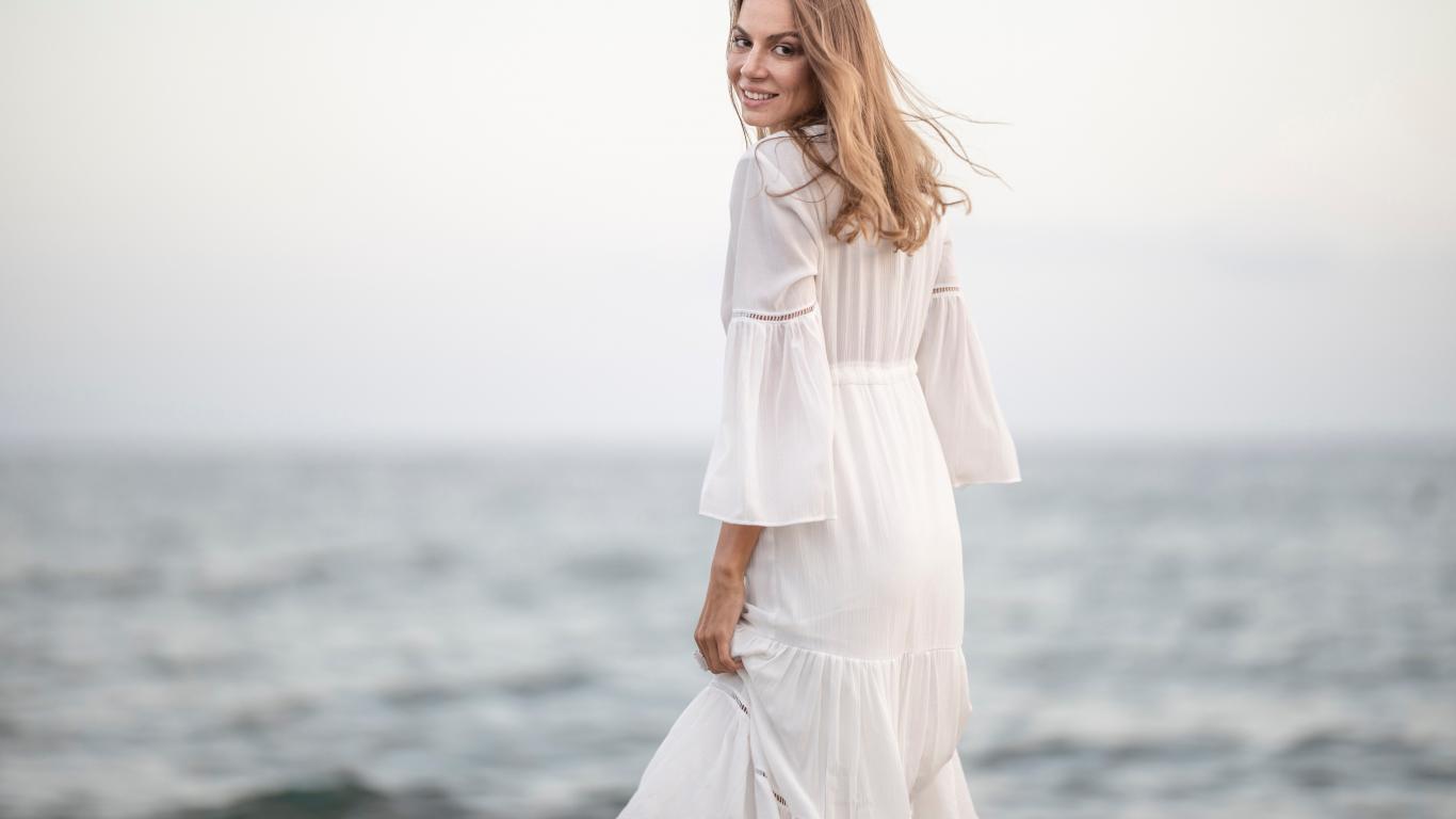 Wallpaper Beautiful girl in a white dress by the sea