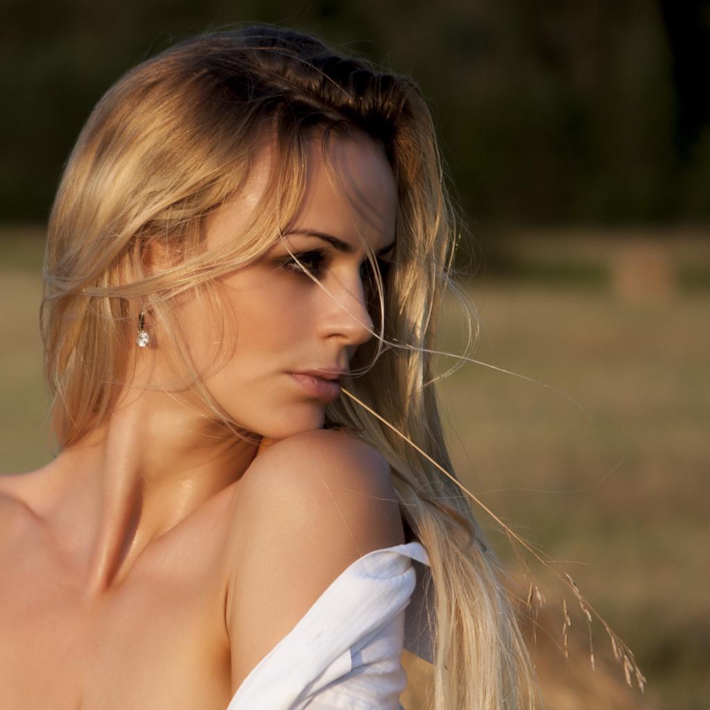 Wallpaper Beautiful long-haired blonde in a white shirt