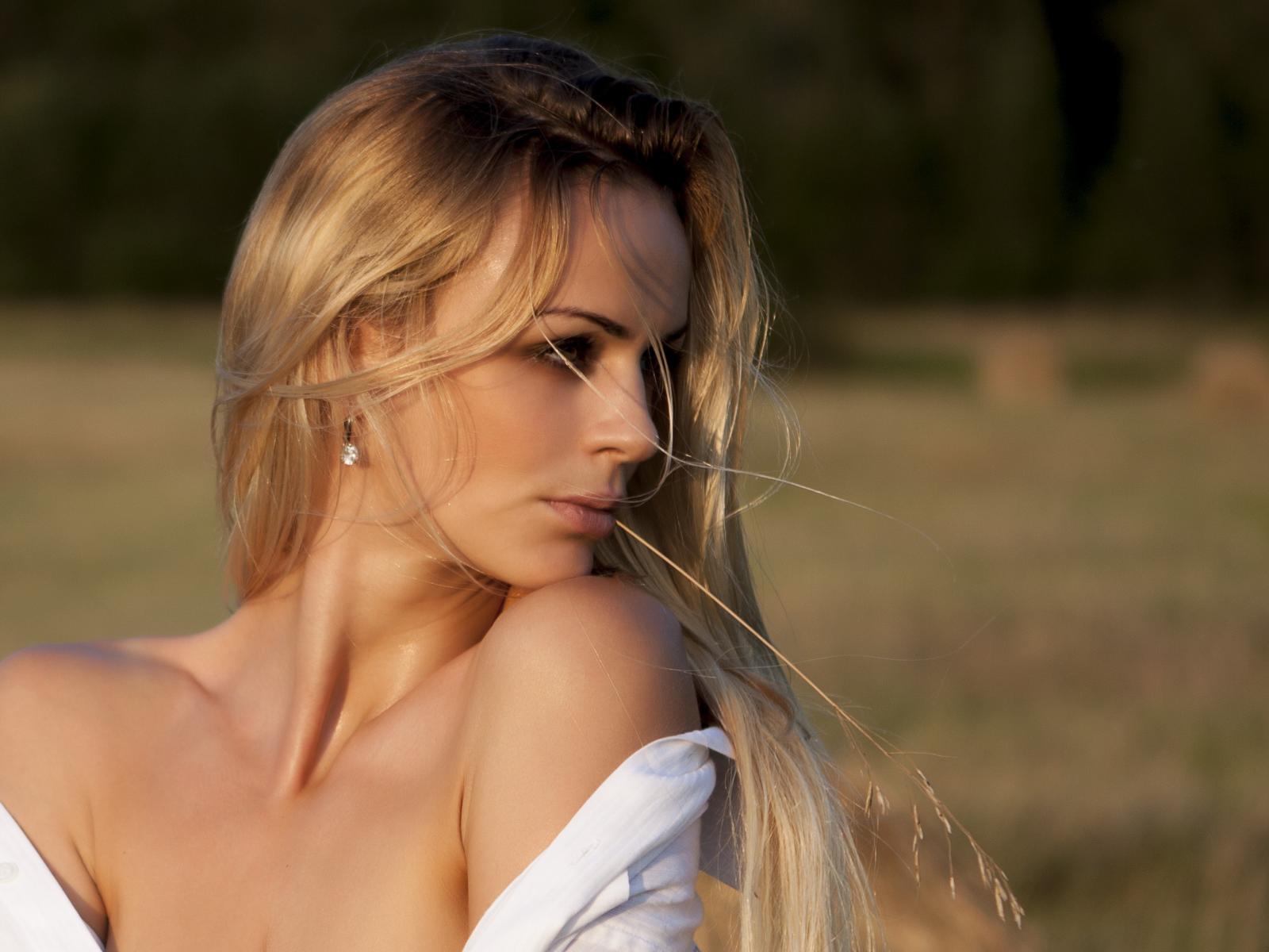 Wallpaper Beautiful long-haired blonde in a white shirt