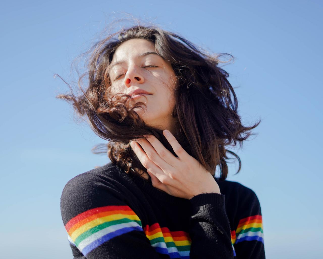 Wallpaper A young girl warms her face in the sun