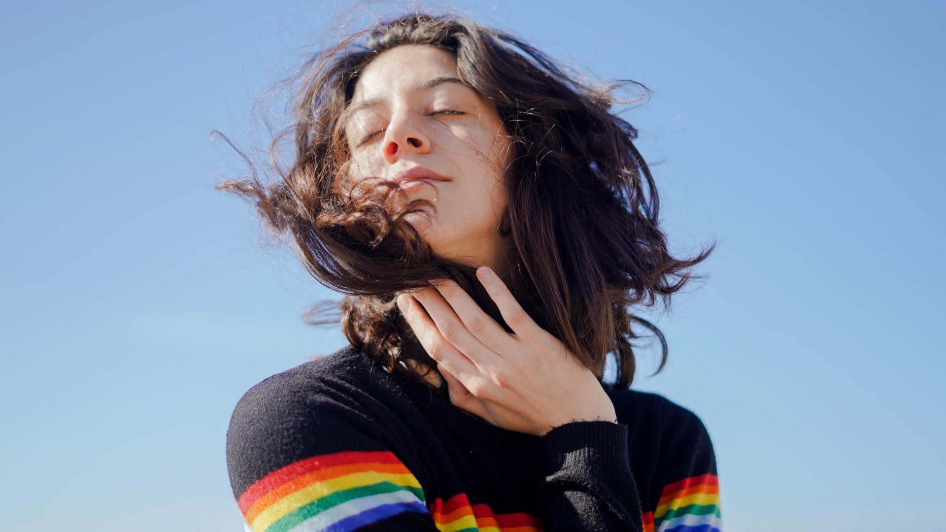 Wallpaper A young girl warms her face in the sun