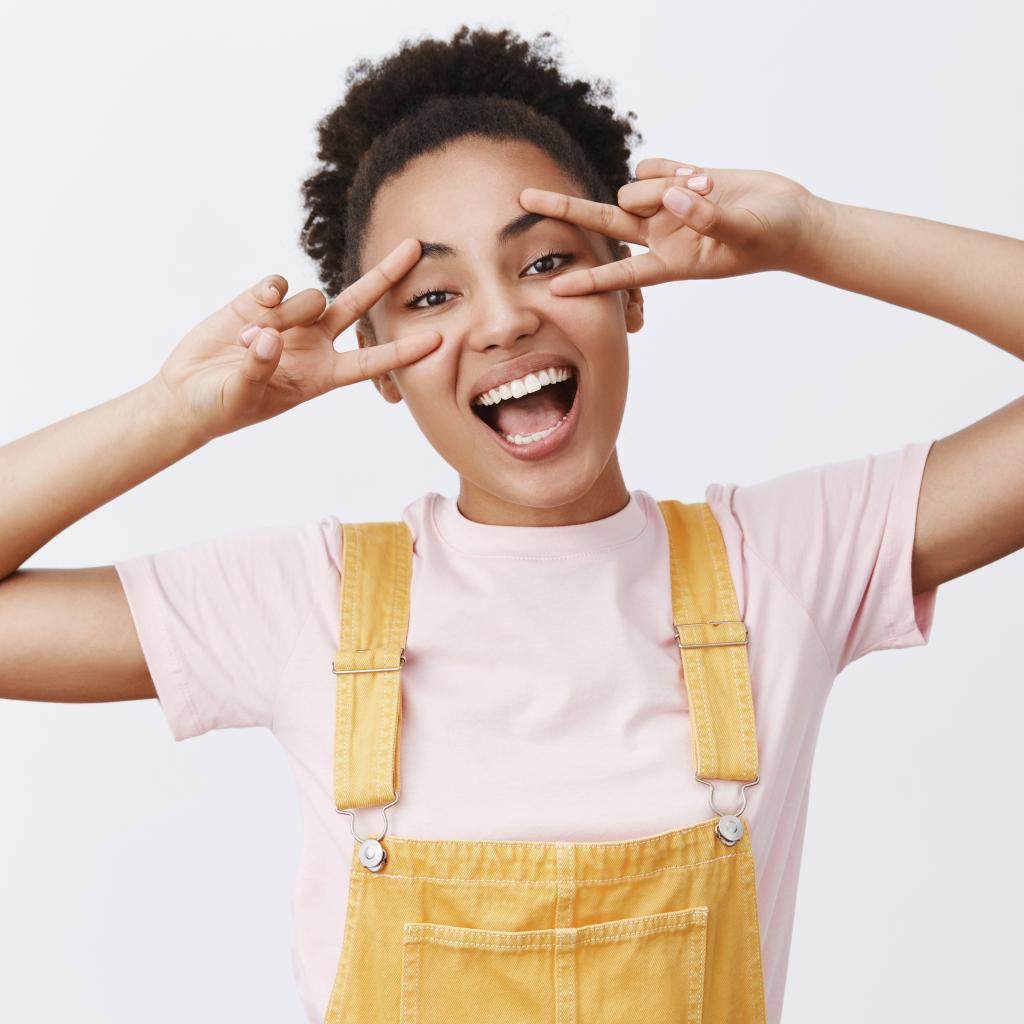 » Wallpaper Happy girl with hands near face