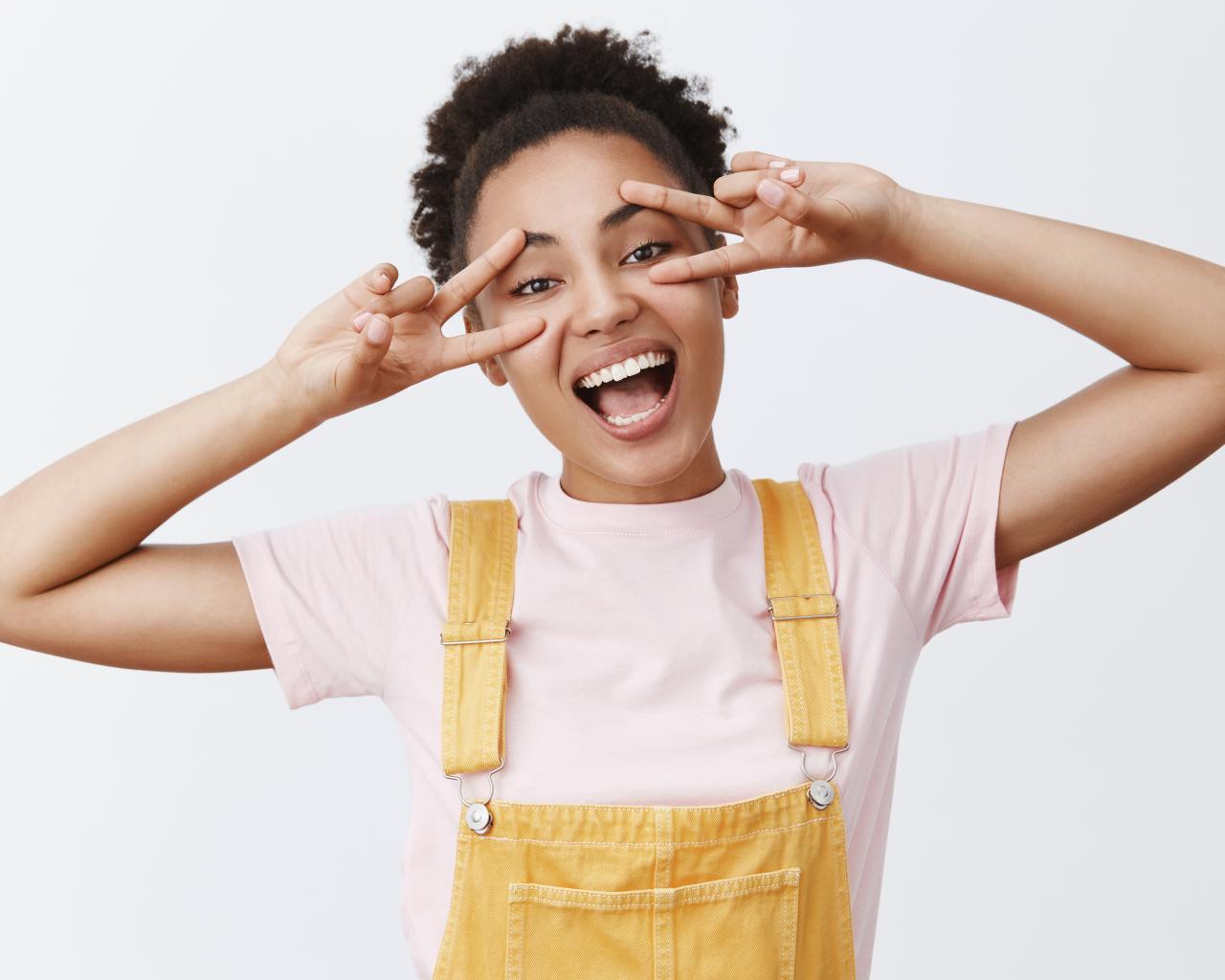 Wallpaper Beautiful blue-eyed girl with hands in multicolored face paint