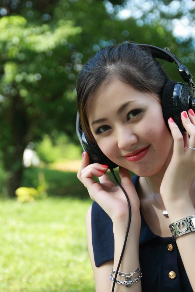Wallpaper A young girl lies in headphones on the ground by the sea