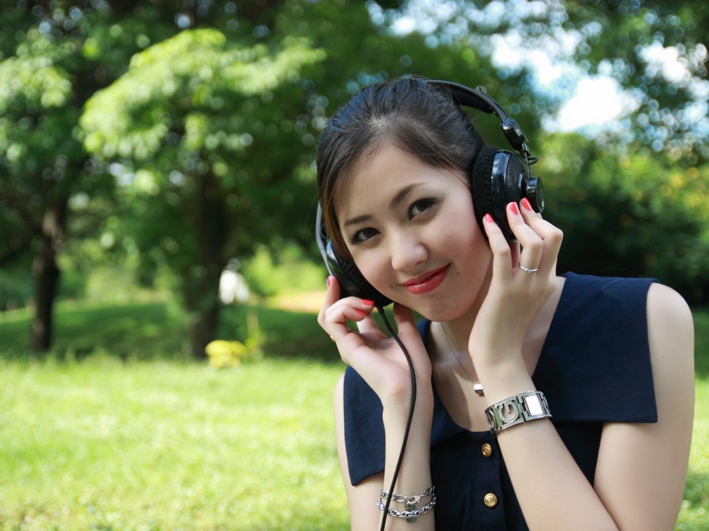 » Wallpaper Young Asian girl in big headphones