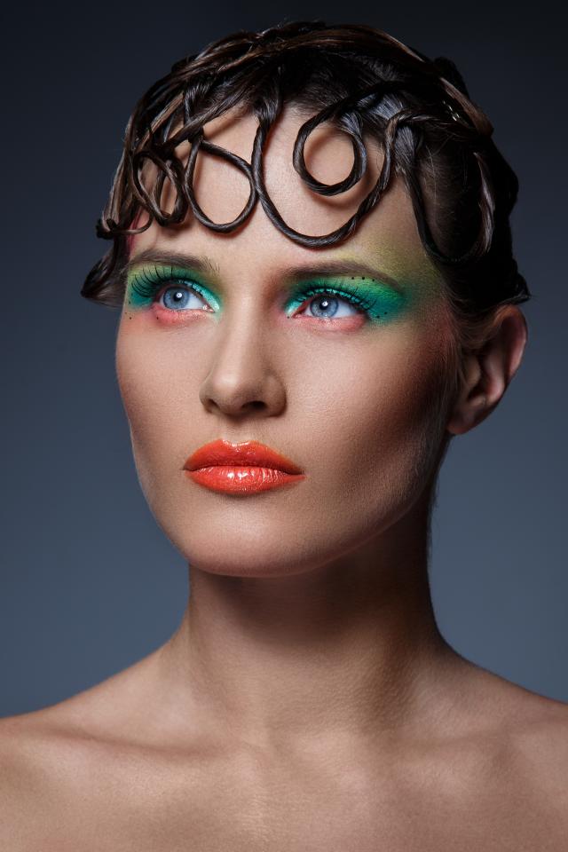 Wallpaper Girl with bright makeup on a gray background