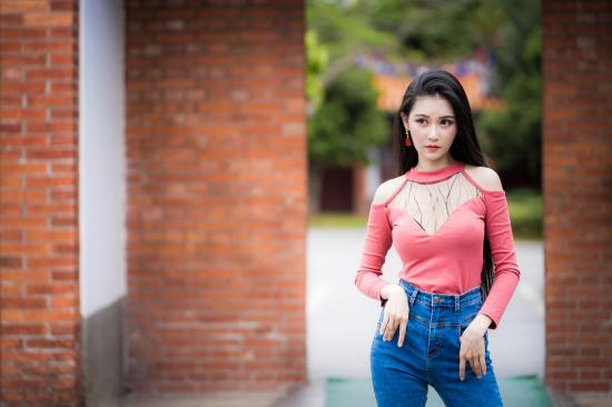 Wallpaper Beautiful asian girl in blue jeans