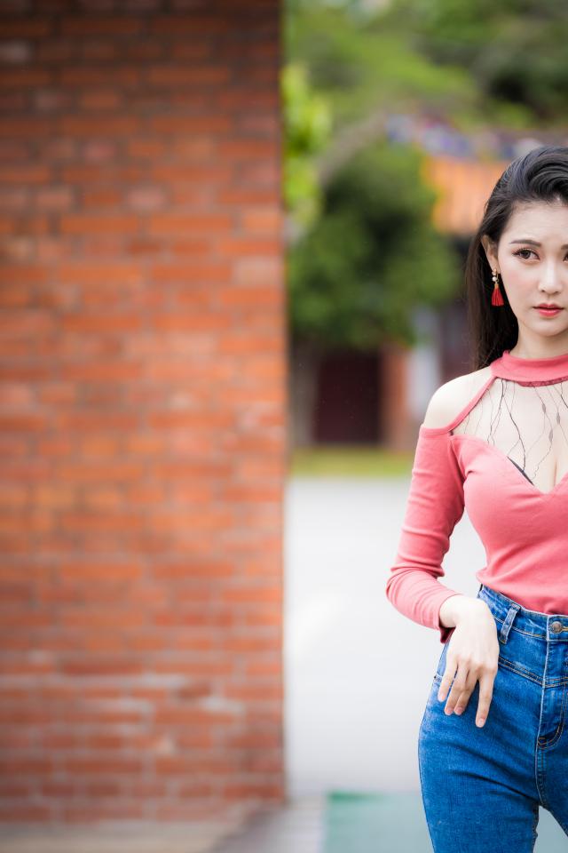 Wallpaper Beautiful asian girl in blue jeans