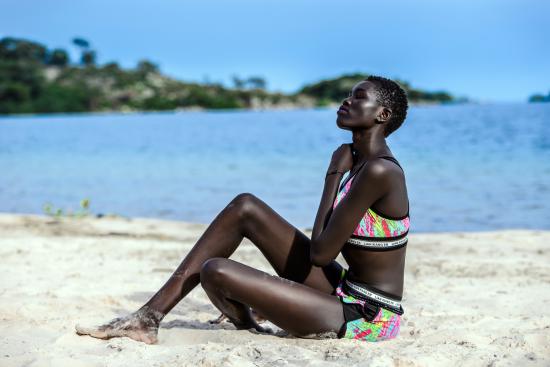 Wallpaper Black girl sitting on the sand