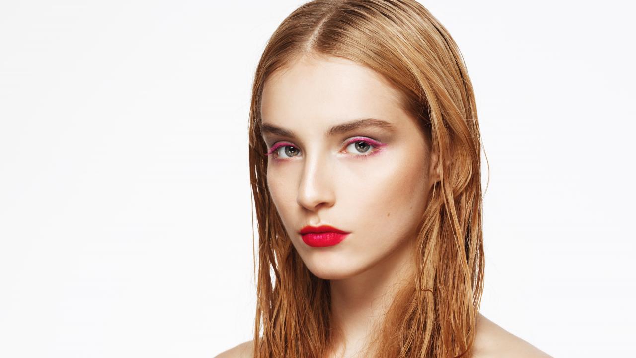 Wallpaper Girl with wet hair with makeup on her face