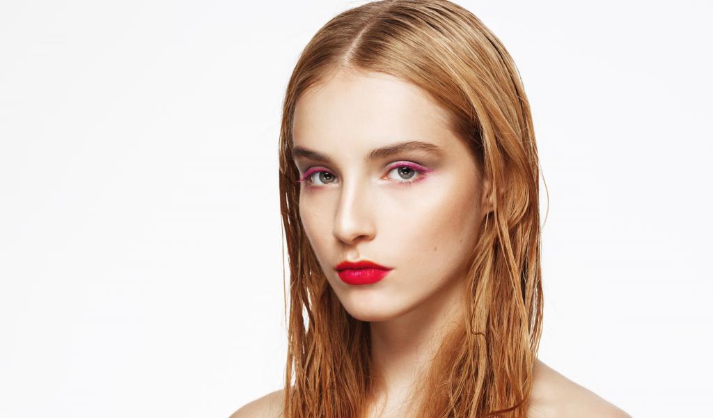 Wallpaper Girl with wet hair with makeup on her face