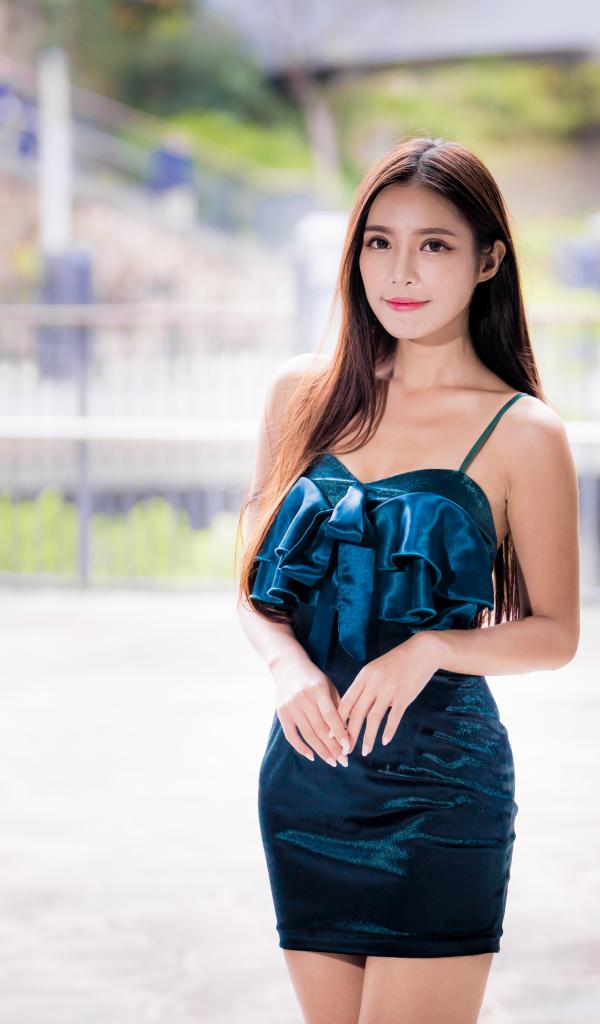 Wallpaper Beautiful asian girl in a short black dress