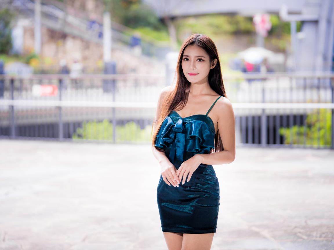 Wallpaper Beautiful asian girl in a short black dress