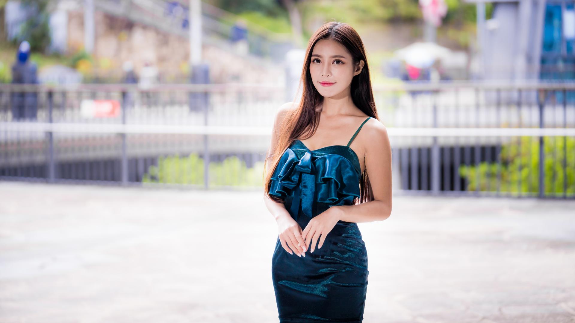 Wallpaper Beautiful asian girl in a short black dress