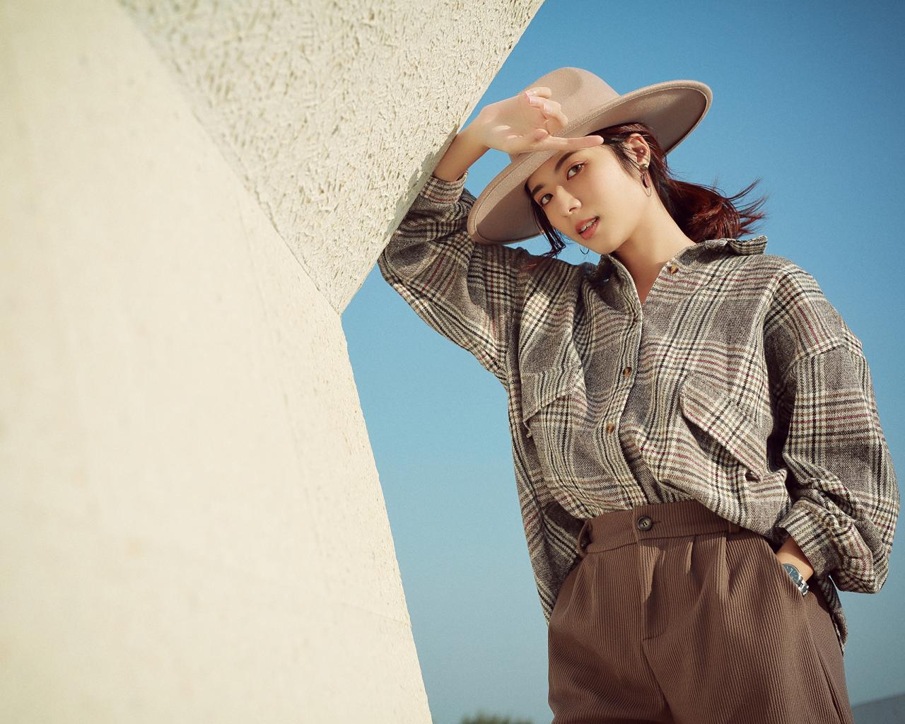 Wallpaper Asian girl in hat and shirt