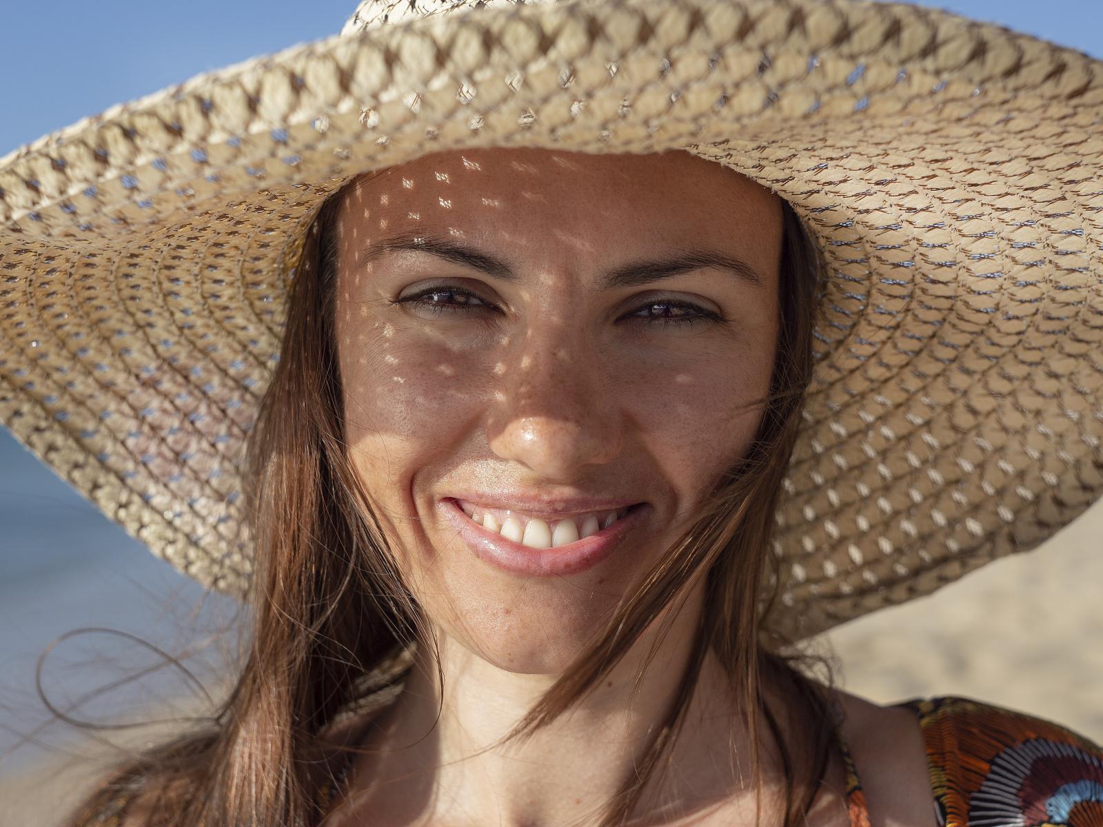 Wallpaper Beautiful brown-eyed girl in a big straw hat