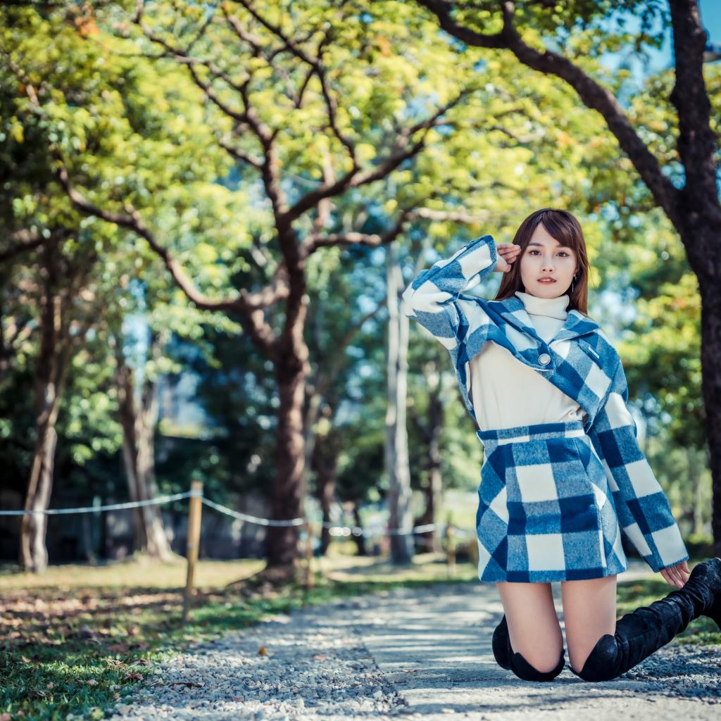 Wallpaper Beautiful asian girl kneeling in the park