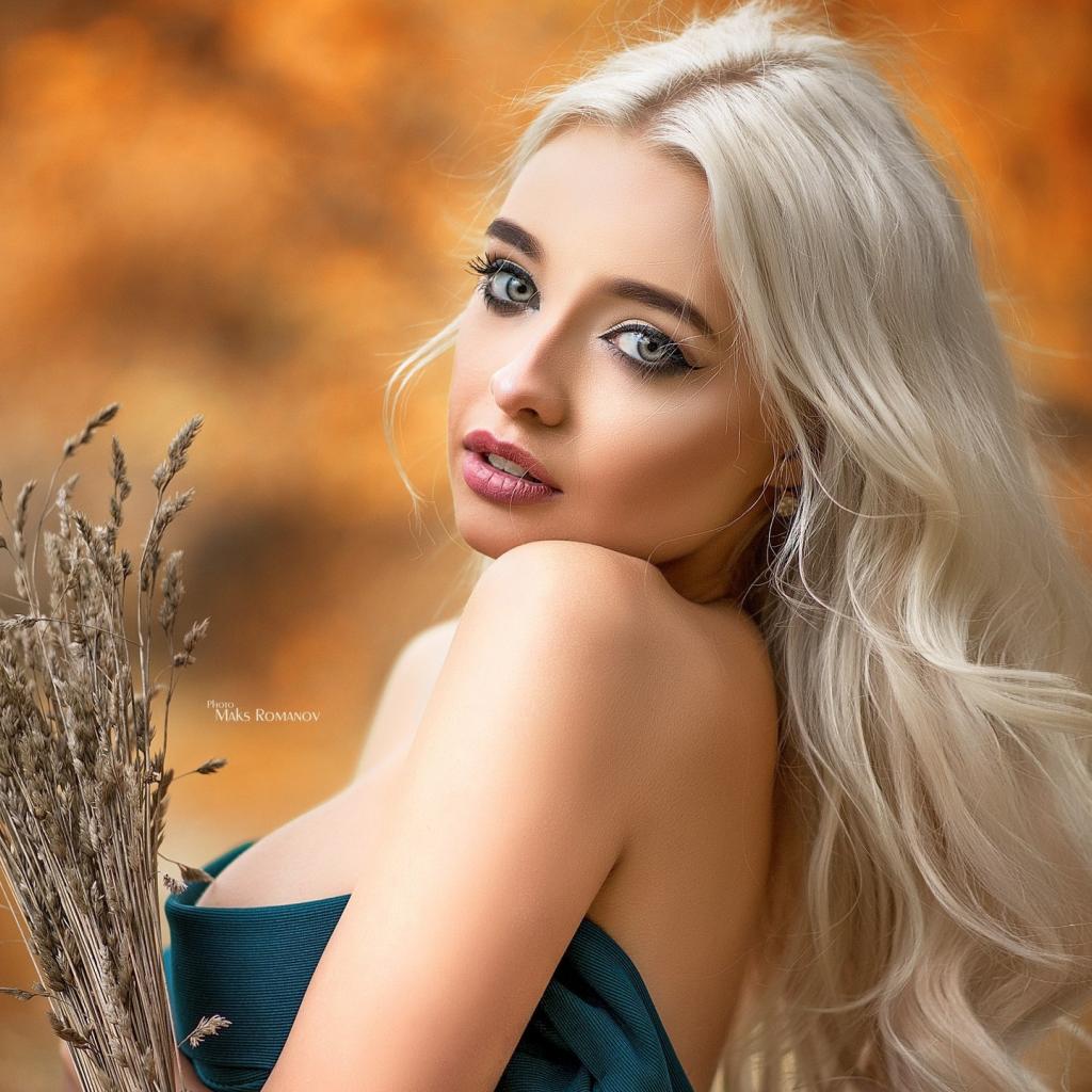 Wallpaper Beautiful blonde girl with ears of wheat in her hand
