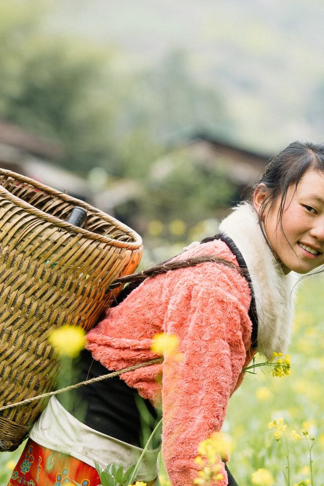 Wallpaper Beautiful asian girl on the field with yellow flowers
