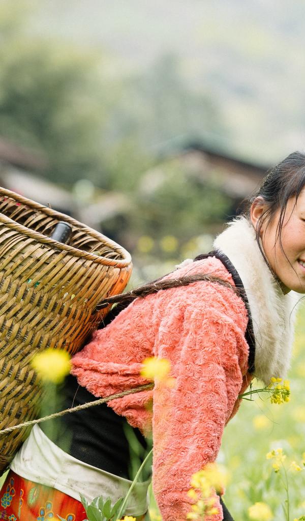 Wallpaper Beautiful asian girl on the field with yellow flowers