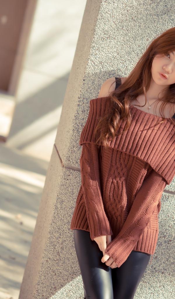 Wallpaper Young asian girl in brown sweater