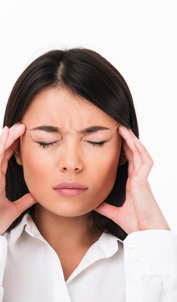 Wallpaper Girl with headache on white background