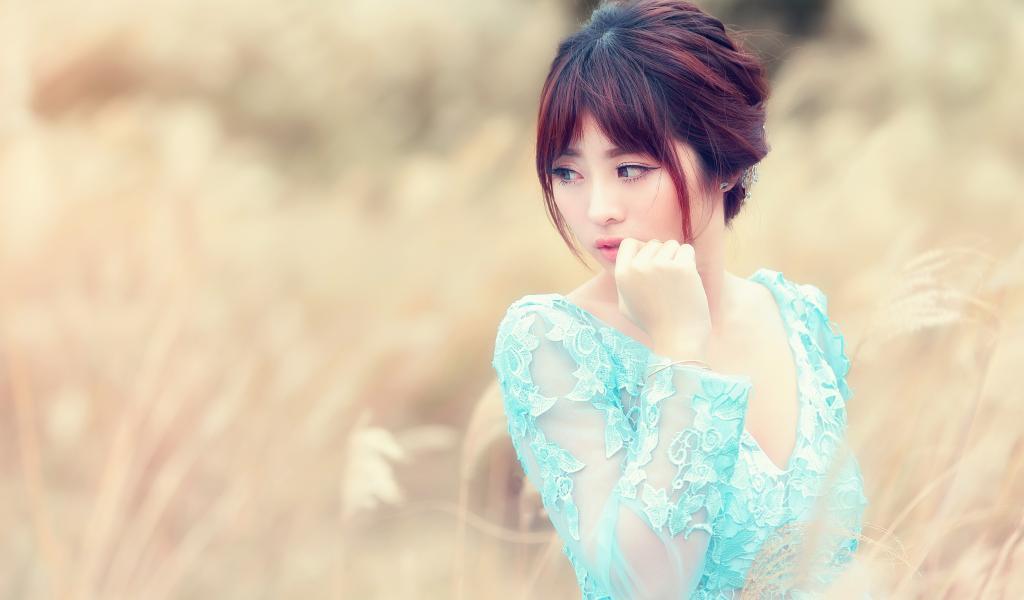 » Wallpaper Cute asian girl in blue dress