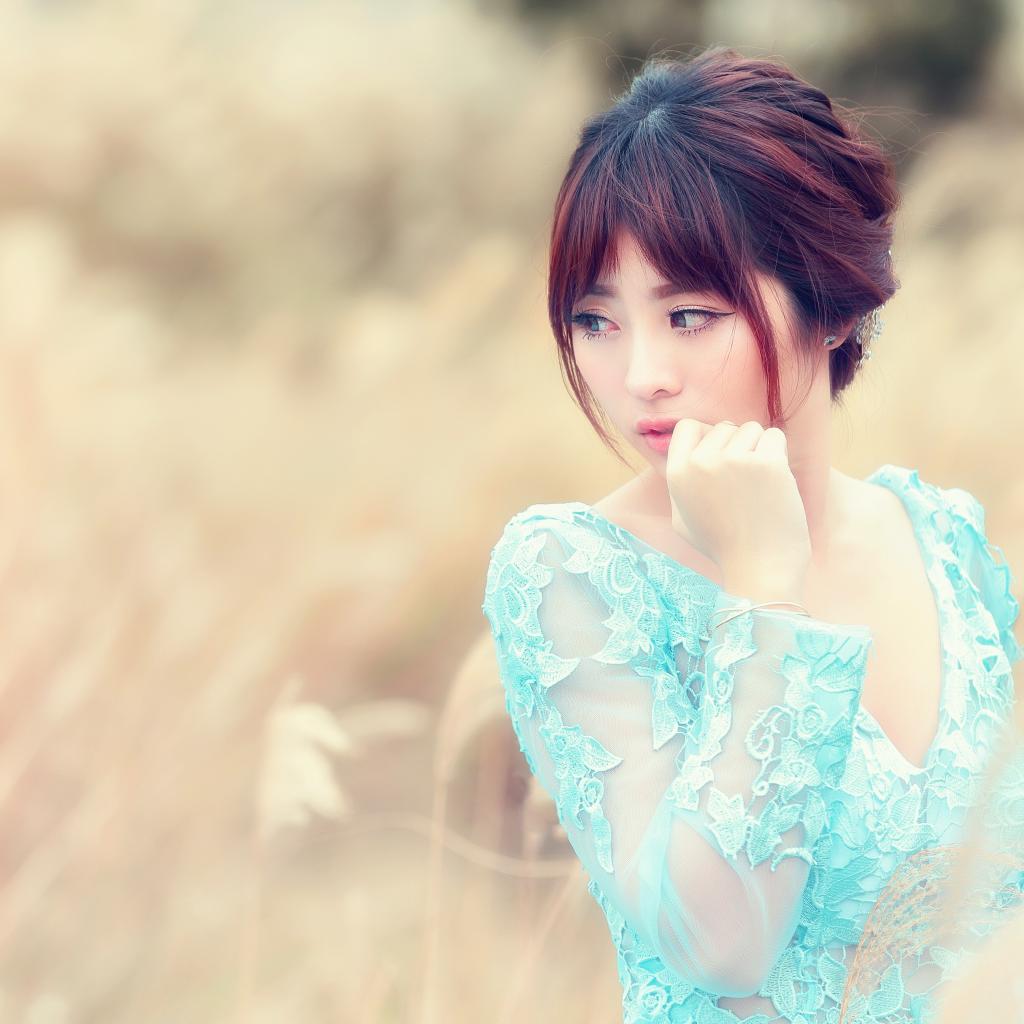 » Wallpaper Cute asian girl in blue dress