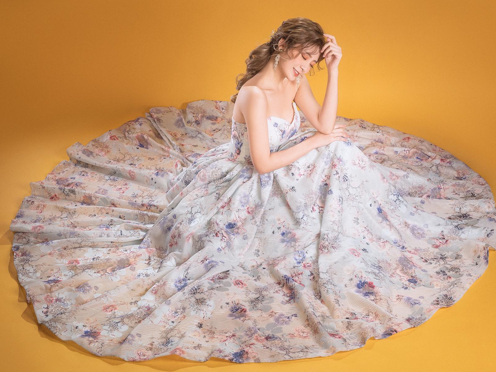 Wallpaper Cute Asian girl in a beautiful long dress