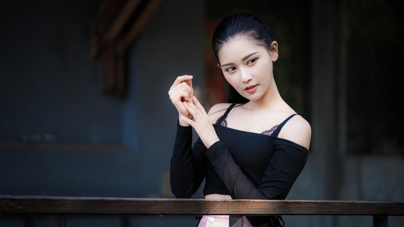 Wallpaper Beautiful Asian girl in a beautiful pink outfit in the park