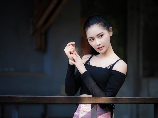 Wallpaper Beautiful Asian girl in a beautiful pink outfit in the park