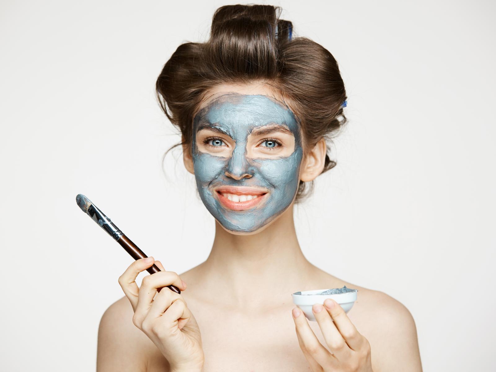 Wallpaper Beautiful girl with a cosmetic mask on her face